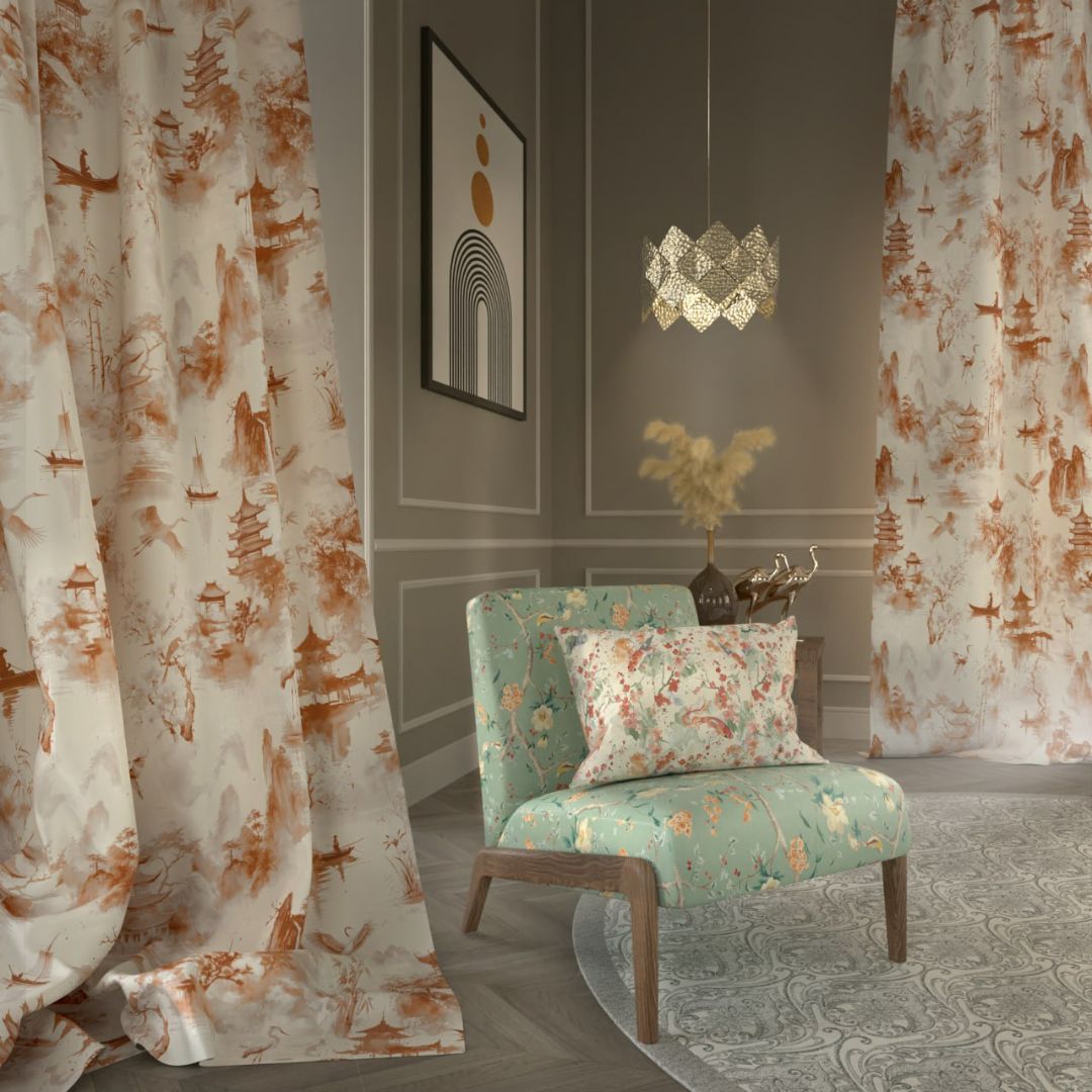 Коллекция KYOTO идеально подходит для создания интерьера, в котором каждый элемент наполнен смыслом и красотой, а ткани становятся не просто украшением, но и воплощением восточной философии.